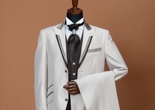煌びやかな印象でシャープに着こなせるホワイトタキシード