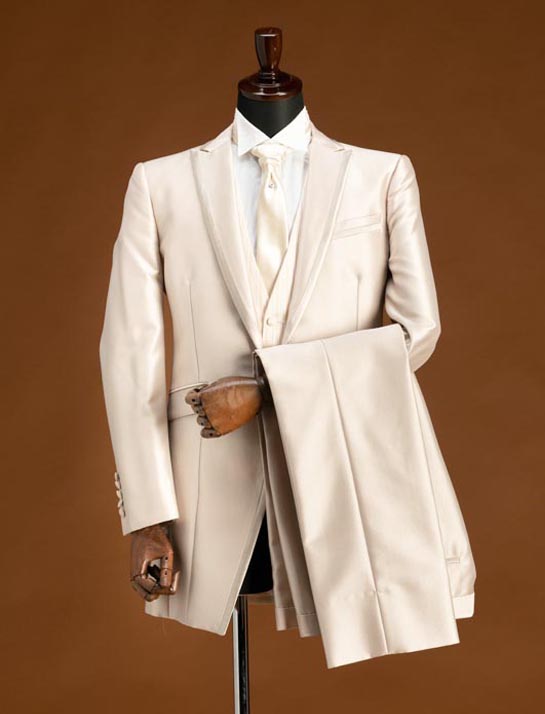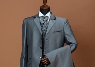 品のある光沢と2枚仕立てのベストが目を惹くフロックコートデザインのタキシード