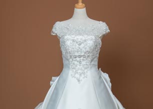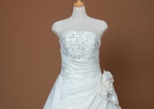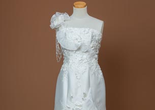 上品なサテン生地が、大人綺麗な花嫁様を演出してくれるAラインドレス