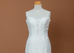 立体感のあるレースとくるみボタンが上品なサテンマーメイドドレス