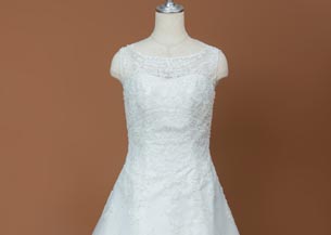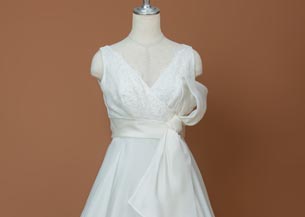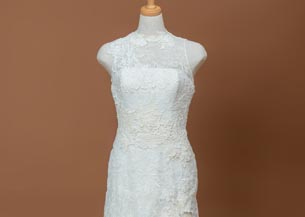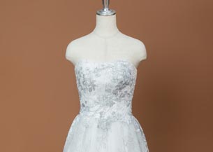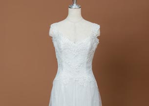 カジュアルウェディングやアットホームな雰囲気にぴったり!フラワーレースのナチュラルAラインドレス