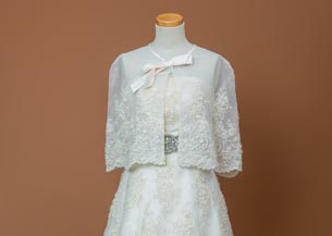 総レースが全体的に柔らかい印象を与えてくれる。女性ならではの美しさや華やかさを引き出してくれる1着。