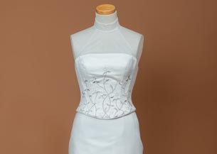 一気に雰囲気の変わる! 2Wayタイプのエンパイアドレス。付属でオーバードレスが付いているのでVネックタイプのドレスにも。