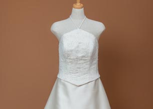 トップス部分のヨークが取り外し可能なドレス。2通りの雰囲気を楽しむことができるお色直しをしない方にもおすすめの1着。