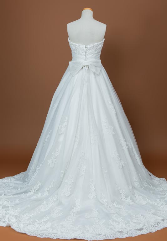 - 全体的に柔らかな印象のレースが施されているためどこから見ても華やかな印象を与えてくれます。