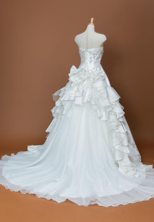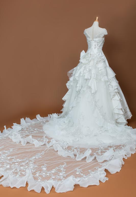 「IVミカドAライン金糸エンブレースオーガンミックスフリルロングトレーン」